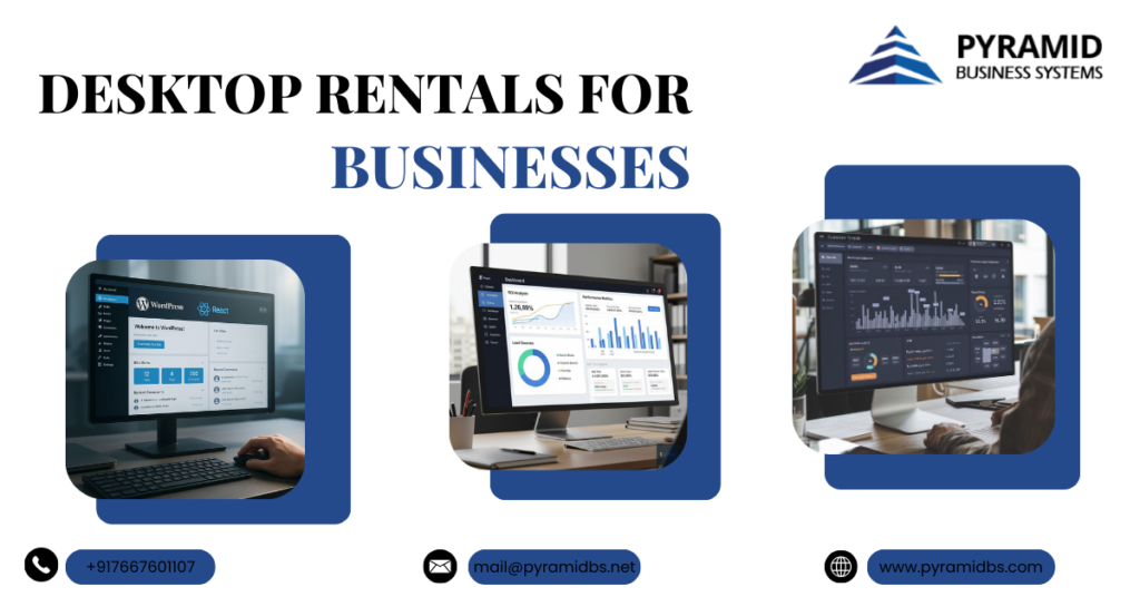 - High-Performance Desktop Rentals – Ideal for businesses needing desktop on rent for graphic design, data analysis, or software development.